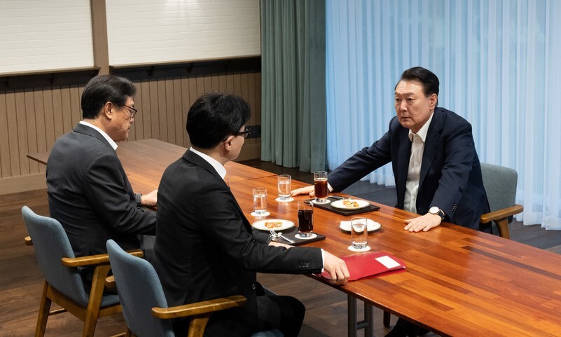 저게 저게 면접보는 면접관이지 어디 여당 대표랑 국정을 의논하는 대통령 포즈냐고...