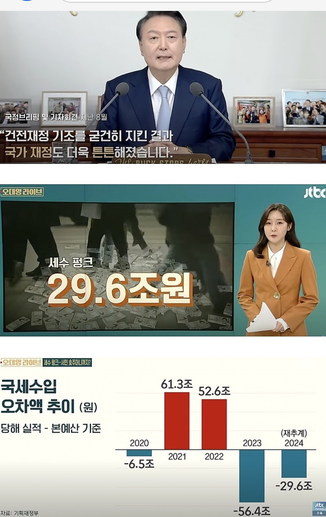 나: 춘자야, 이게 지금 나라 꼴이 말이 돼? 세수 펑크 났다고 저런 비상금까지 끌어다 쓰면서도 부자 감세는 놔두고, 결국 서민들 호주머니 털어가는 거잖아!