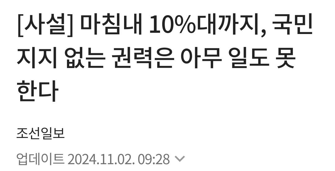 윤석열의 정치적 경험 부족과 한계는 외면한 채, 정권 교체를 위한 도구로 활용했다. 그러나 이제 윤석열 정부가 위기에 처하고 지지율이 바닥을 치자 조선일보는 돌연 태세를 전환했다.