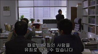 영화의 첫머리와 끝머리에 나오는 “열 명의 죄인을 놓친다 하더라도 죄 없는 한사람을 벌하지 말지어다.” 란 지문은 이 영화가 사법부에 던지는 메시지입니다.