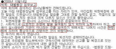 '촛불재판' 압력 행사 신영철 대법관의 메일 원본