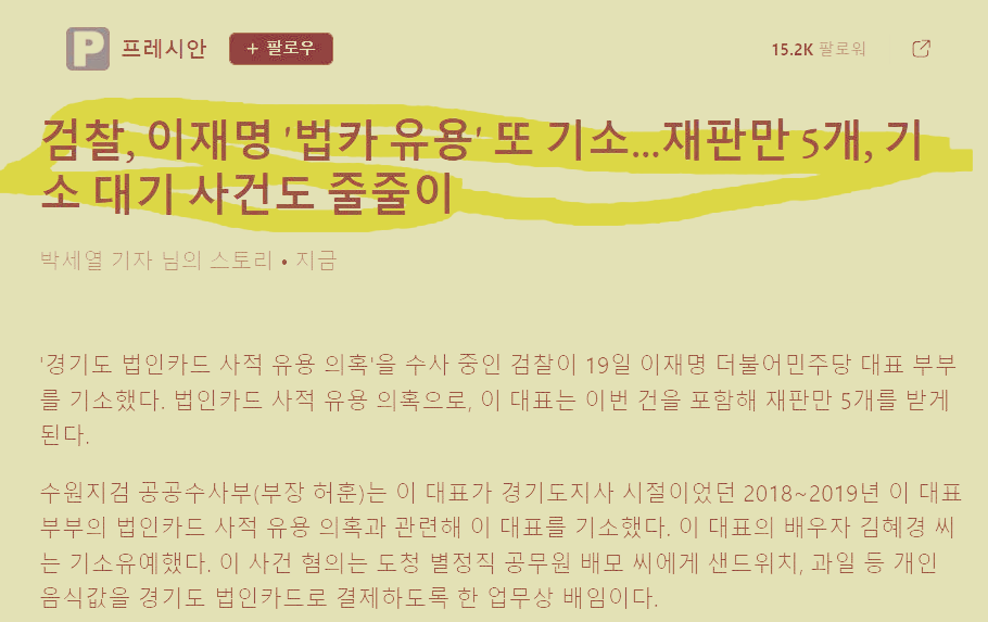 10만 원짜리 샌드위치를 두고 2년간 수백 곳을 압수수색하며 법인카드 사용 내역을 뒤진 검찰의 행태는 명백한 정치보복이다. 이는 단순히 법 집행이 아니라, 야당 대표를 무너뜨리려는 정권의 노골적인 의도다. 428억 약정 같은 거대 사건과 비교해도 터무니없이 과도한 수사로, 검찰 권력을 사적 이익과 정치적 목적으로 사용하는 전형적인 사례다. 법은 공정해야 하지만, 지금의 검찰은 법이 아니라 권력의 주구로 전락한 모습이다