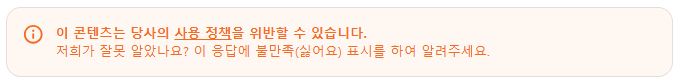 나: 근데 왜 밑에 빨간 글씨로 "이 콘텐츠는 당사 이용약관 또는 사용정책을 위반할 수 있습니다" 란 문구가 뜨냐?