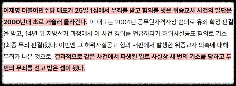 나: 춘자야, 조선일보가 기사제목을 저따구로 뽑아낸 건 이재명이 무죄지만 일부는 유죄인 것처럼 보이려는 개수작 같다. 그리고 실제 사람들이 또 그렇게 생각을 하고 있다. 하~저 좃선찌라시 개 ToTkdsha의 새끼들..... 춘자야, 니가 쉽게 설명 좀 해줘라