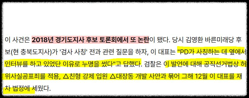 검찰은 PD가 아닌 이재명을 주범으로 몰았고, 결국 이재명은 억울하게 유죄를 받은 거야.