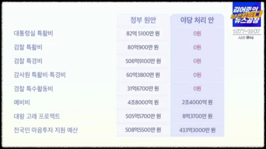 → 특활비 등 논란이 된 예산이 모두 살아난다.