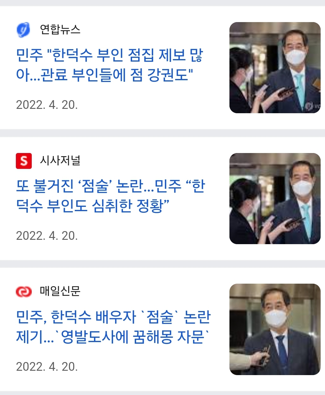 최강욱:예 그 얘기가 있었죠. 초반에 김건희 씨하고 한덕수 씨 부인하고 다니는 점집이 겹친다 그래서 알게 됐다라는 얘기가 유력하게 있었죠. 아니 그건 사실이에요. 제가 한덕수 씨 부하직원이었던 분한테 직접 들은 얘기고 한덕수 씨가 자기 부하직원이 맘에 든다. 그러면 최대 서비스가 집으로 오라고 해가지고 밥을 맥인다는 거예요. 같이 식사를 하고 나서 선물로 주는 게 점집 알려주는 거예요. 여기를 가야지 나처럼 이렇게 될 수 있다. 그런 거였어요. 그래서 한덕수랑 일해본 사람은 다 알아요.