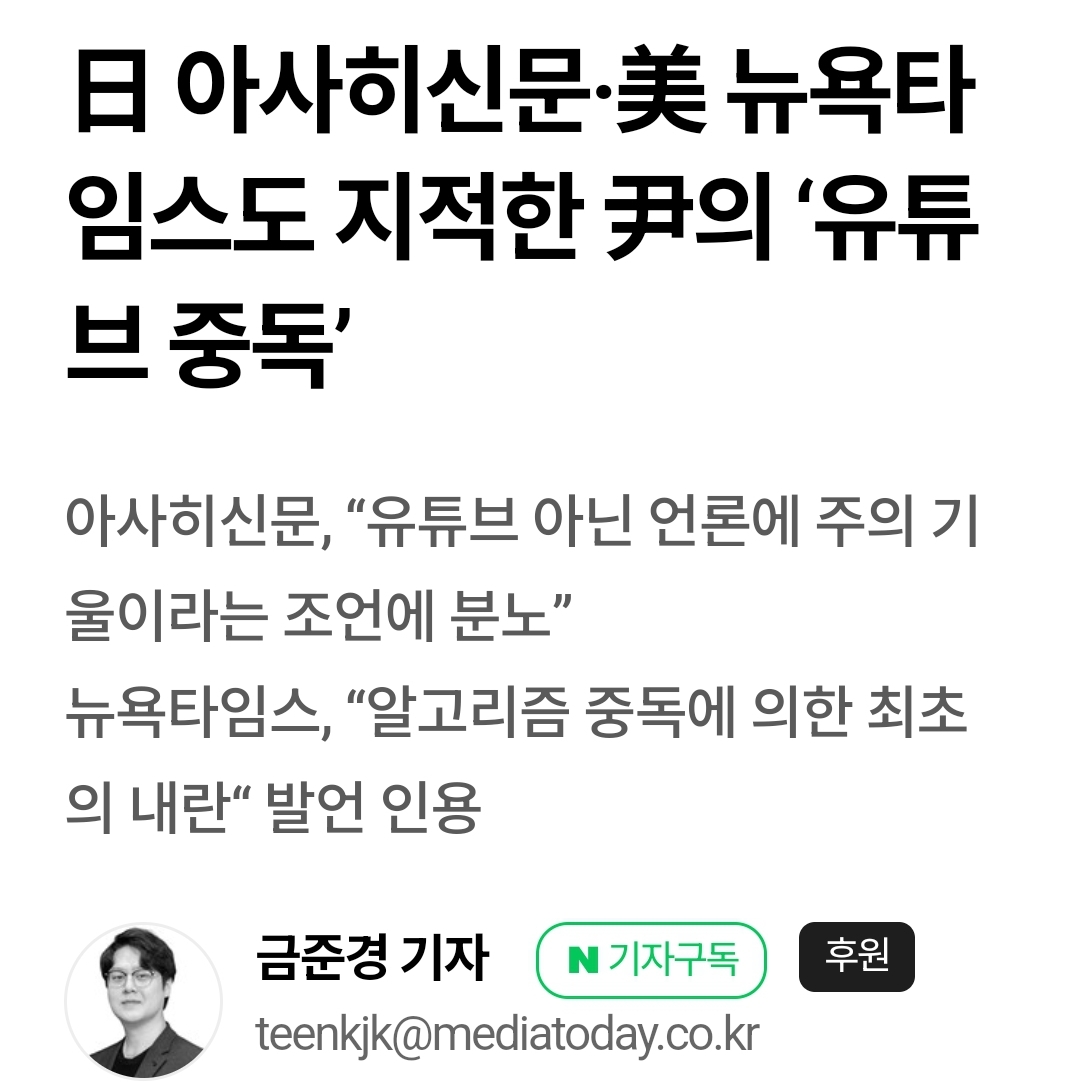 나: 유튜브 알고리즘 진짜 문제 많아. 외신에서도 윤석열 대통령이 계엄을 선포했다는 가짜뉴스가 퍼진 이유 중 하나로 유튜브 알고리즘을 지목하지 않았어?