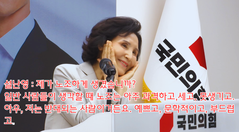 노무현은 '사람 사는 세상'을 말했고, 설난영은 '노조는 못생겼다'고 말했다. 이 둘을 같은 선상에 두는 건, 역사와 사람에 대한 모독이다.
