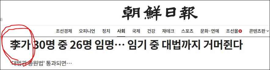 조선일보가 이재명대통령을 ‘이가’라고 불렀다. 이 기사 제목은 수많은 국민의 분노를 자아내고 있다