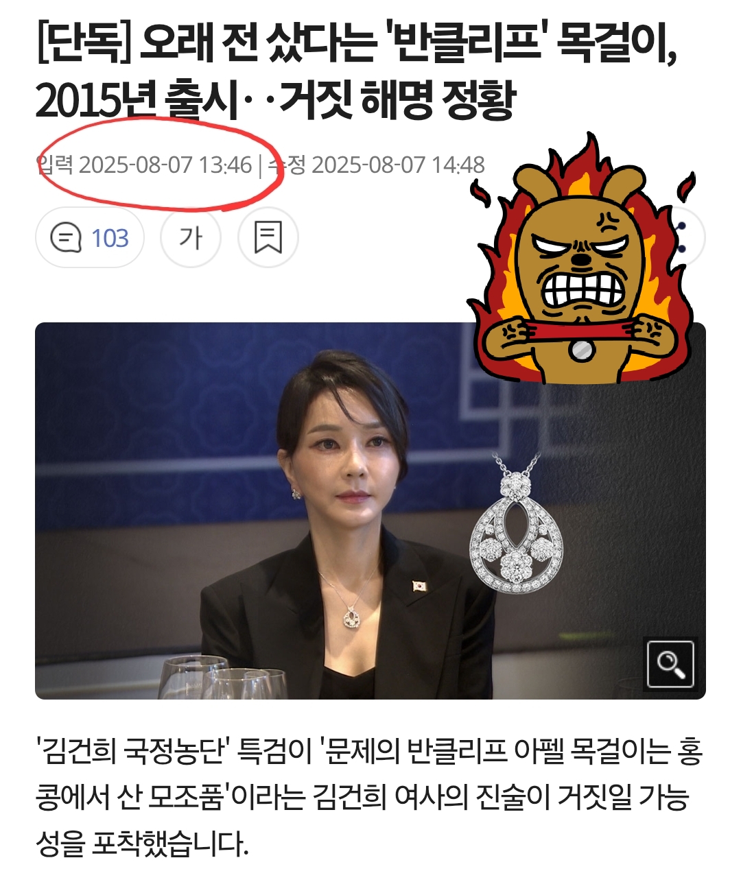 2025년 7월 27일~28일: 언론 보도 – "오빠에게 선물한 모조품을 빌려 착용했다"