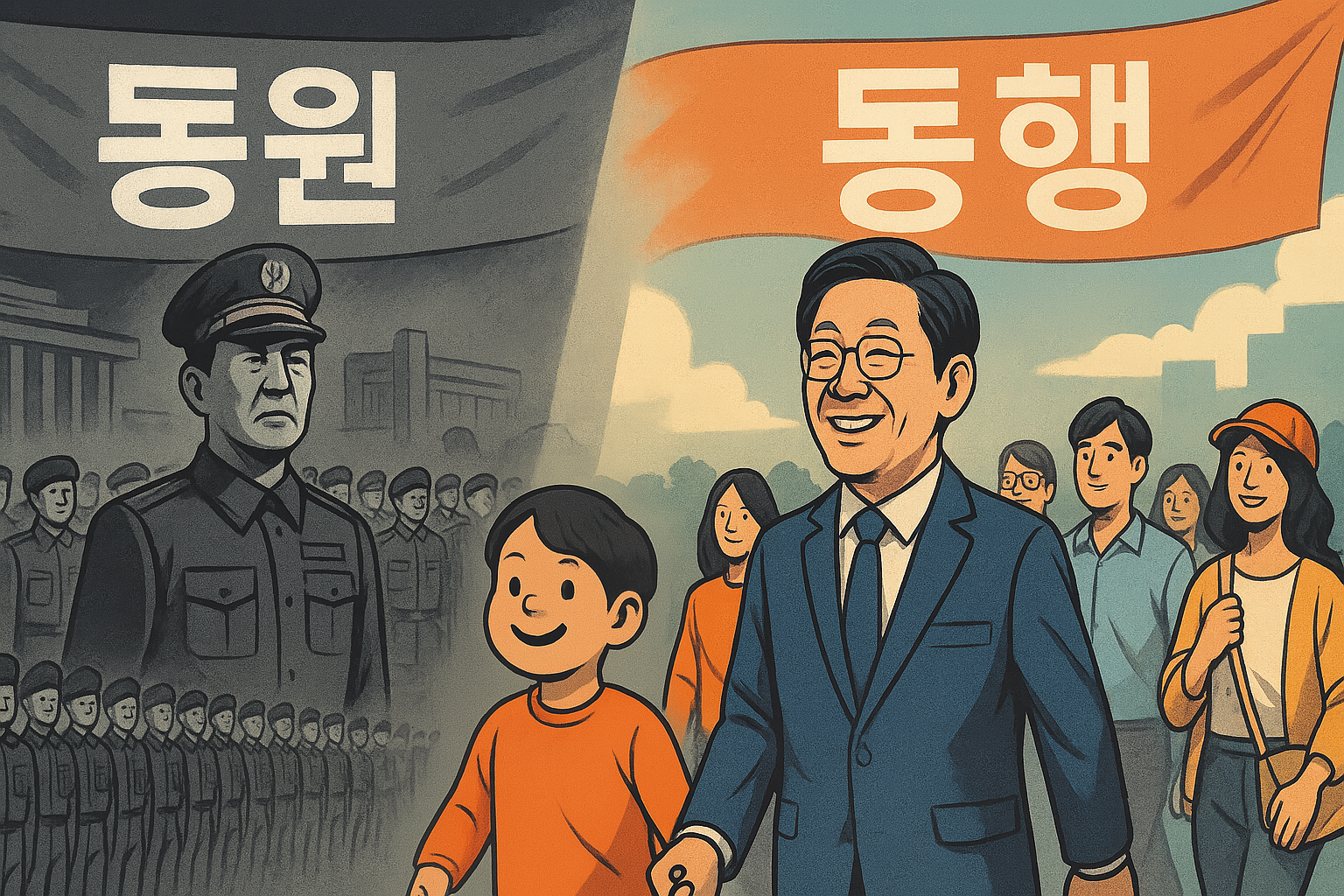박구용 교수는 이재명 정부가 제안하는 '동행 체계'라는 철학을 제시한다. 그는 보수 진영이 과거부터 현재까지 정치권력 유지를 위해 사용해온 '동원 체계'를 설명하며, 박정희 시대부터 이어진 이 정치체계의 핵심이 '상대를 악마화하여 제거하는 방식'이라고 설명한다.