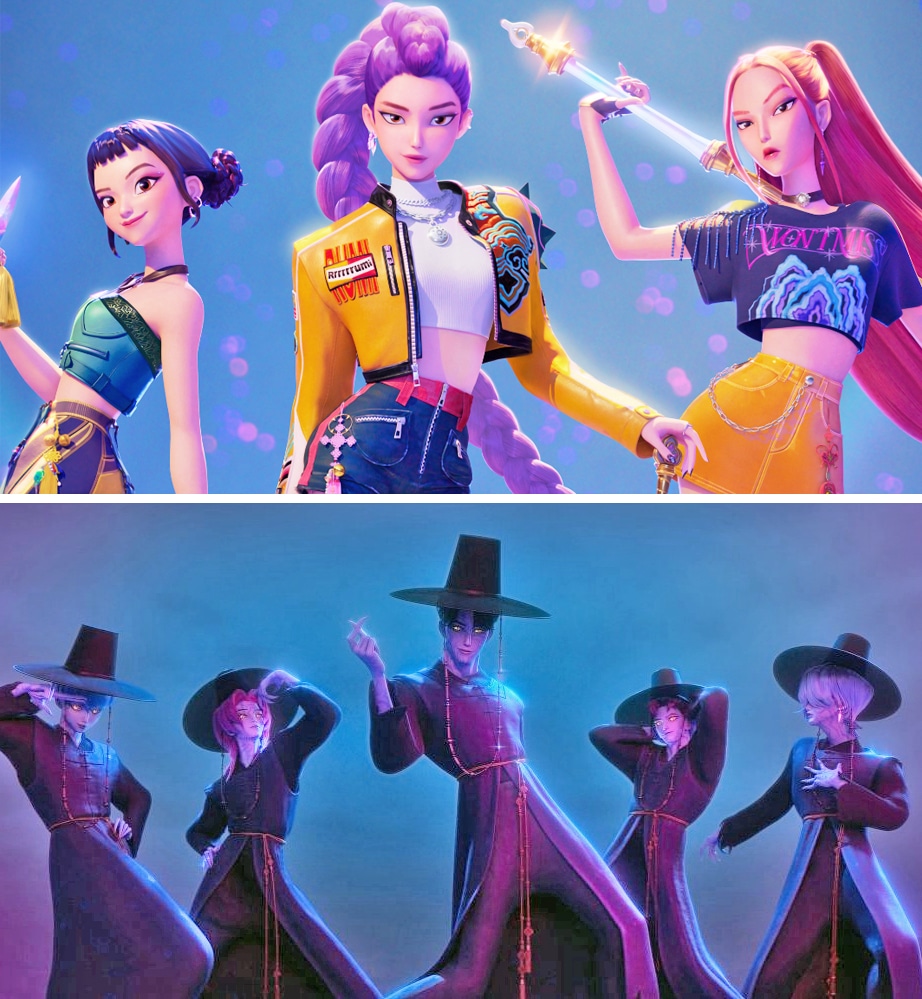 신화와 민속의 깊이: 영화의 핵심 갈등은 한국의 무속 신앙에 깊이 뿌리내리고 있다. 데몬 헌터들(무당)은 노래와 춤을 통해 '혼(Hon)'이라는 보호막을 유지하며, 악역은 저승사자와 도깨비, 전통 민화에서 파생된 존재들이다.
